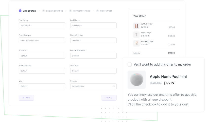 Displays a customizable popup containing a last-minute offer in the checkout stage in order to persuade buyer and increase the overall sale.